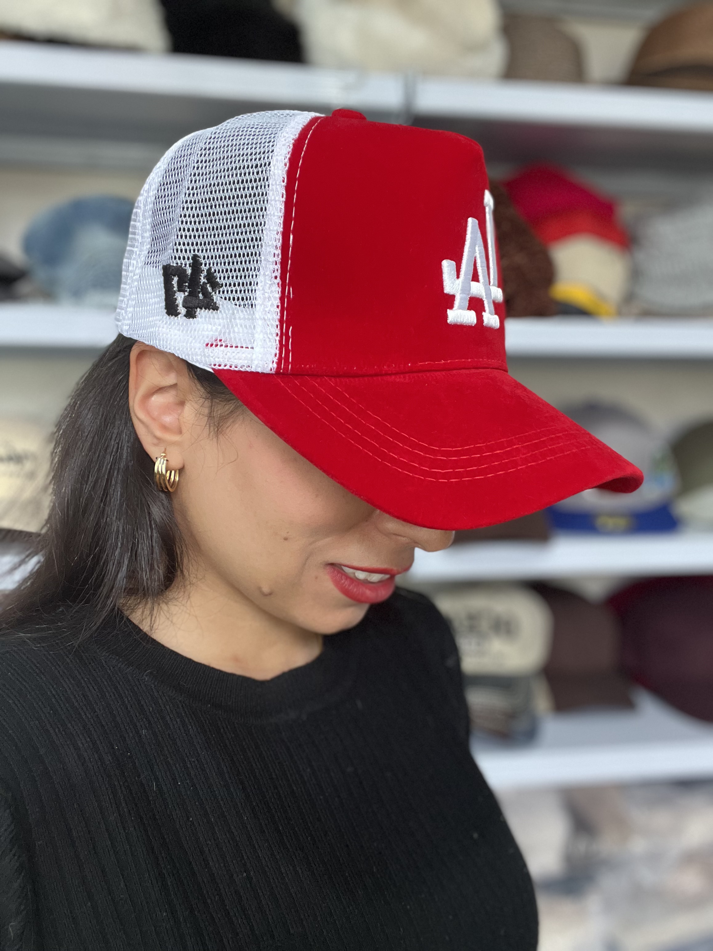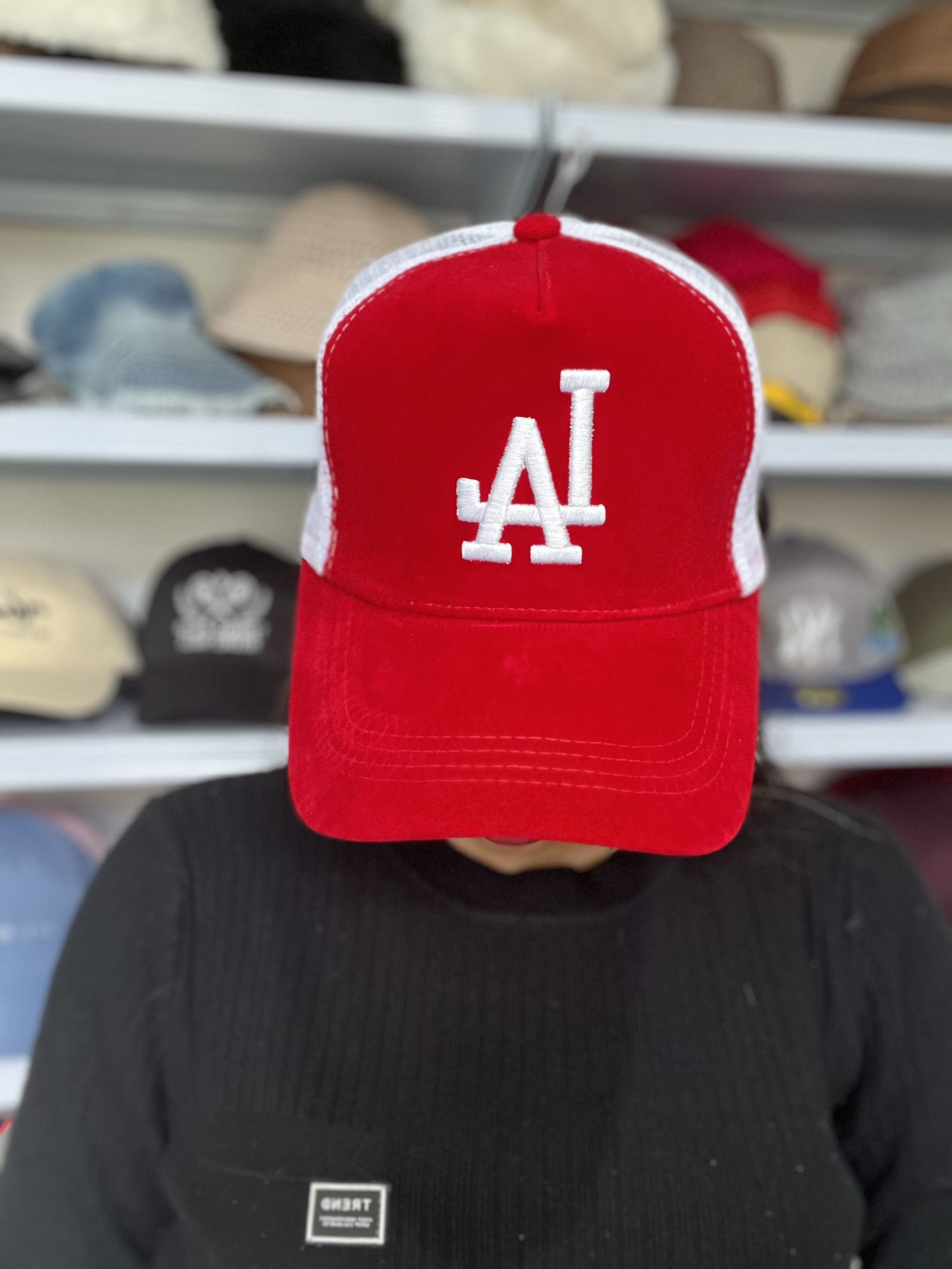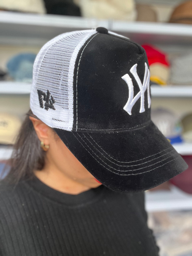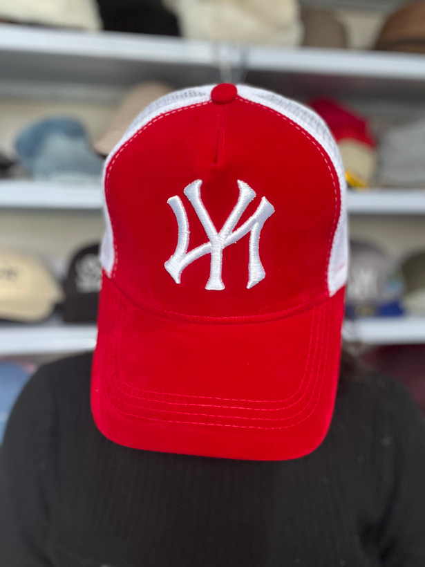 کلاه کپ NY قرمز با پارچه مخملی کامل (رویه و زیر نقاب)، کیفیت بالا و طراحی تراکر. انتخابی خاص برای استایلهای اسپرت و ترندی.