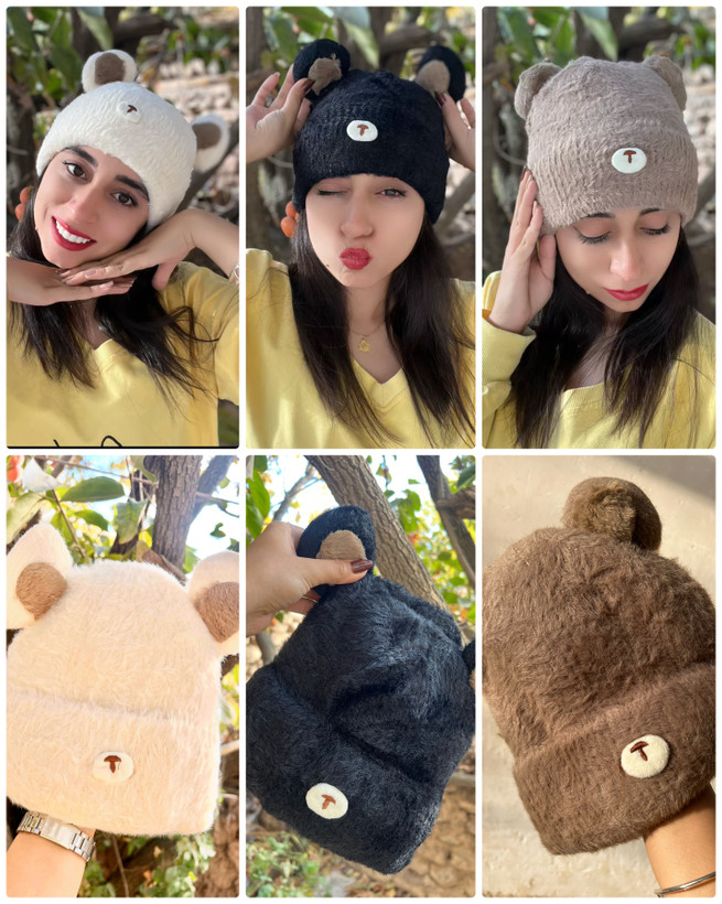 کلاه بافت موهر خرسی با طراحی فانتزی و دوستداشتنی، انتخابی گرم و خاص برای روزهای سرد سال.