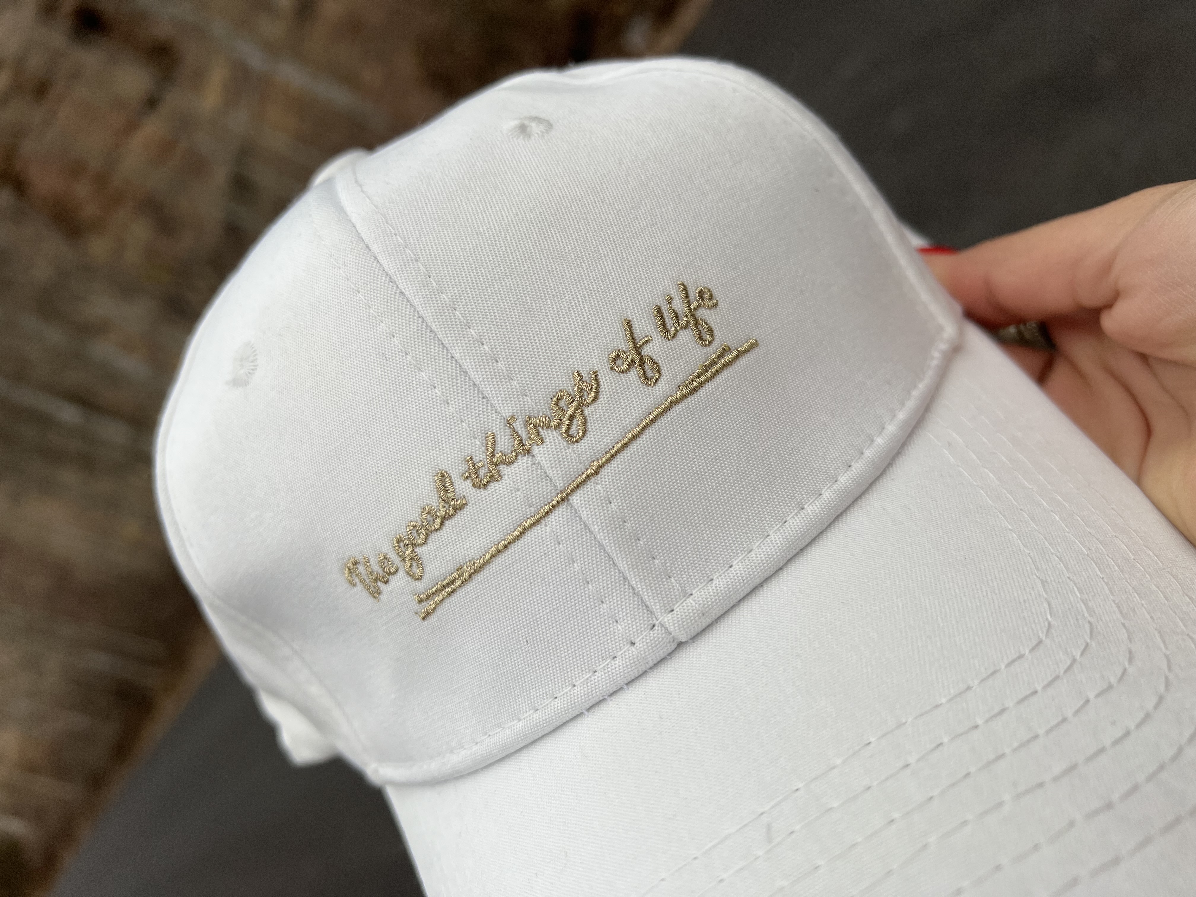 کلاه نقابدار اسپرت با طراحی مینیمال و نوشته طلایی روی کلاه، دارای بند قابل تنظیم برای فیت بهتر. ترکیب سادگی و جزئیات ظریف، این کلاه را به انتخابی خاص برای استایل روزمره تبدیل کرده است.